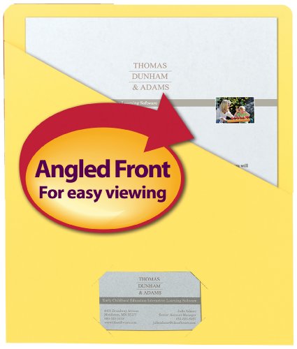 These Smead Slash Pocket Folders are great to organize and distribute documents that I did not want to staple or drill holes in. Made a very impressive and sturdy presentation, when I made the cover sheet align with the right margin, and the colors are truly bright and bold (unlike some folders in washed out colors). Using this type of folder instead of a regular file folder is a must if you do not want your papers falling out, wrinkled sheets and bent corners on documents. A place for your business card on the front completes this pocket folder.