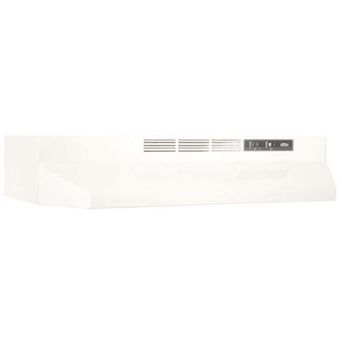 412408 Finish: Almond Pictured in white Features: -Under cabinet hood. -Available in: -White finish. -Bisque finish. -Stainless Steel finish. -Almond finish. . -Installs as non-ducted only with charcoal filter. -Accommodates 75 watt light (Bulb not included). Specifications: -UL listed. -Overall dimensions: 6'' H x 24'' W x 17.5'' D. For more information on this product please view the Sheet(s) below: Specification Sheet Installation Sheet