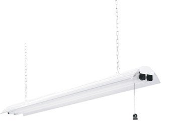 Contoured reflector shoplight is fully assembled, ready to install. Includes 6 1/2" contoured reflector, 5' power cord and pull chain power switch. RE electronic ballast starts instantly down to 0 F. Mounting chain included. 48" x 6 1/2" x 2 3/8". Uses (2 8 foot fluorescent light : Lithonia Lighting 1245 Shop Light>Compare Prices<